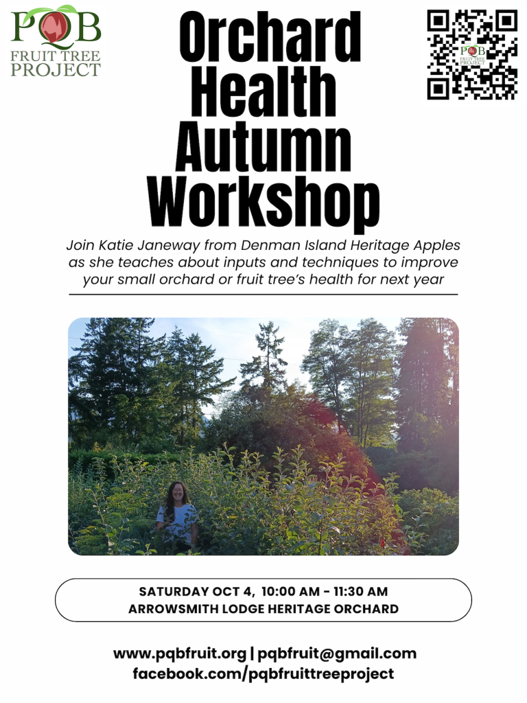 PQB Fruit Tree Project is a Parksville / Qualicum non-profit organization committed to identifying and making use of our local food sources, including fruit trees and gardens, and distributing them to our local community. Through our MAC Community Garden, a 4000 square foot public garden, we help teach and inspire local citizens to grow more food.